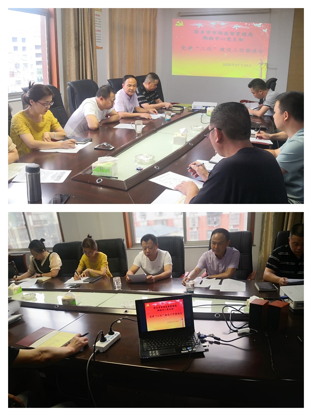 7月24日,萍乡市市场监督管理局陶检中心在五楼会议室召开党建“三化”建设工作推进会,部署下半年党建“三化”建设工作任务。支部10名党员参加。